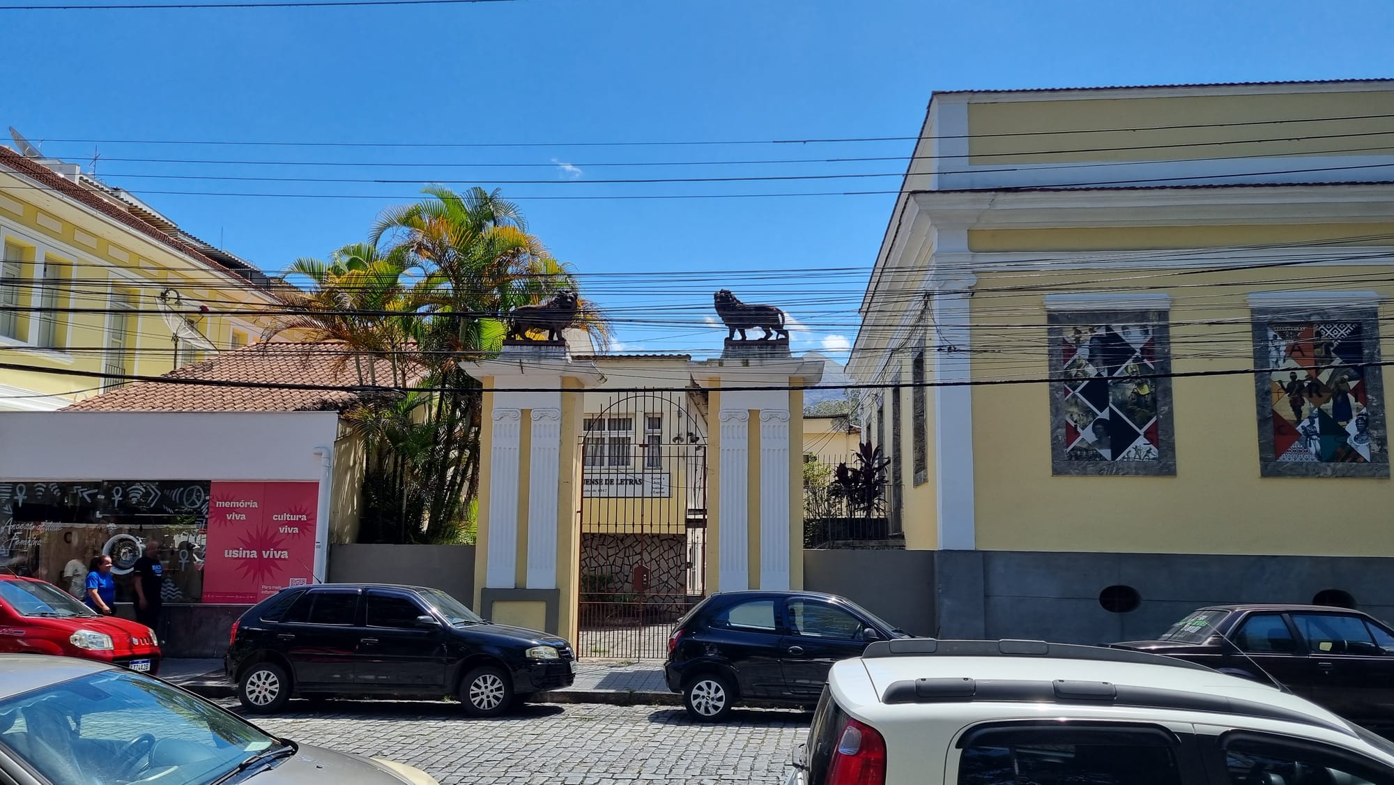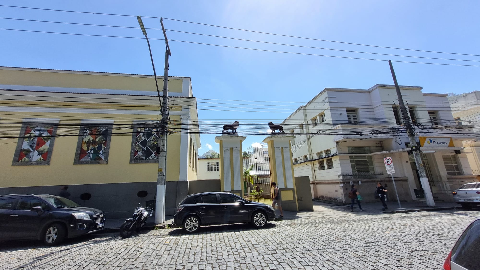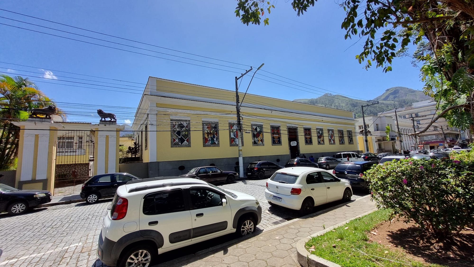 Dois leões em frente a Academia Friburguense de Letras e os outros dois em frente a Fundação D. João VI