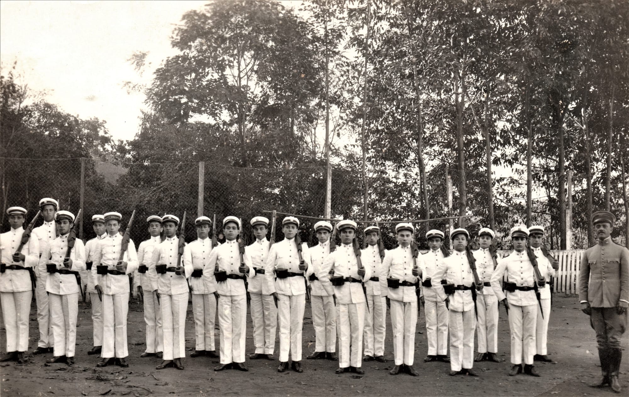 Imagem de 1927 quando o Tiro de Guerra funcionava no antigo hotel Leuenroth.