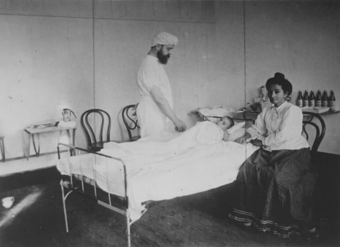 Imagens da cirurgia realizada em 30 de maio de 1900. Chapot-Prévost e a esposa ao lado de Rosalina. Acervo internet.