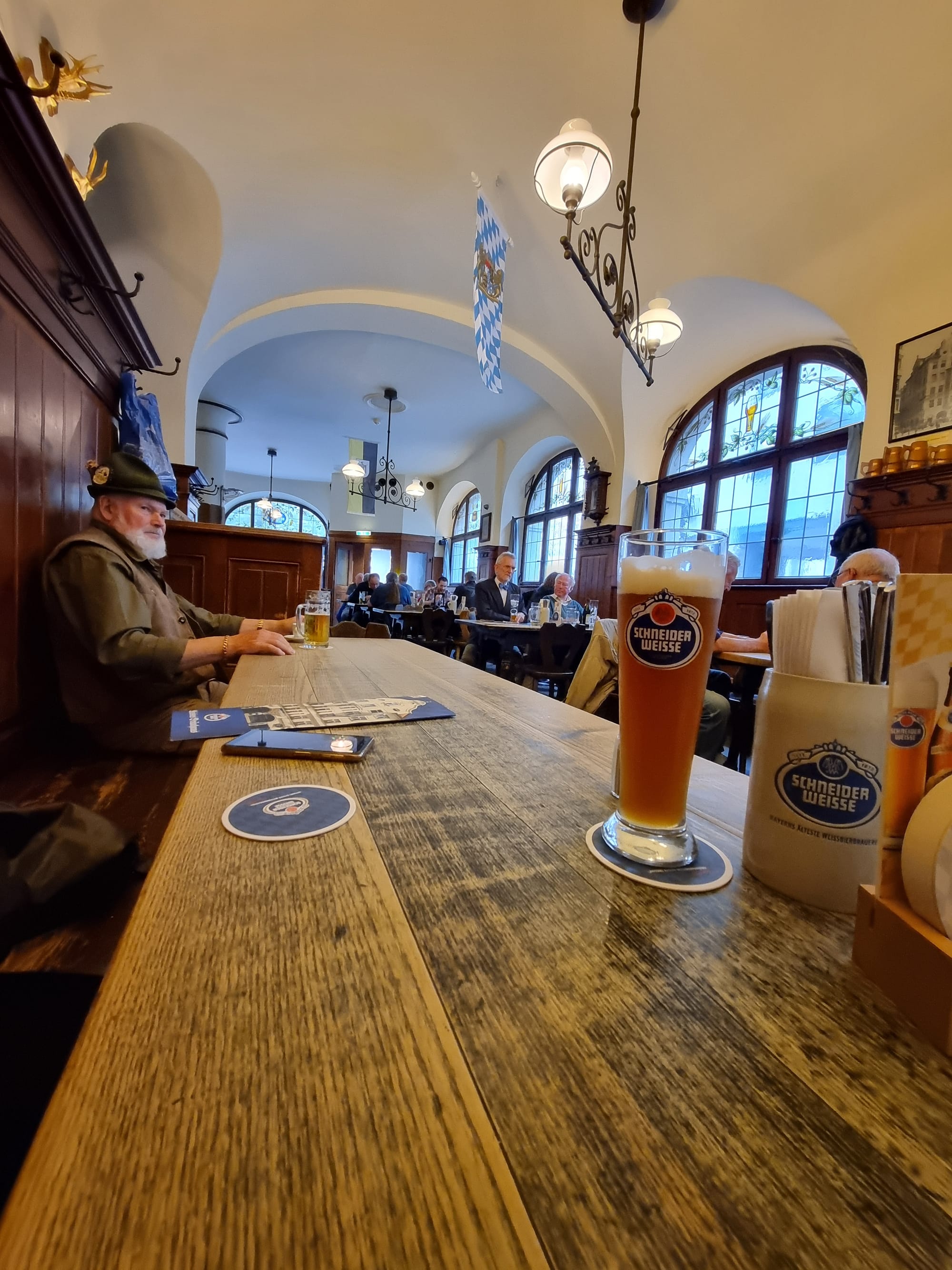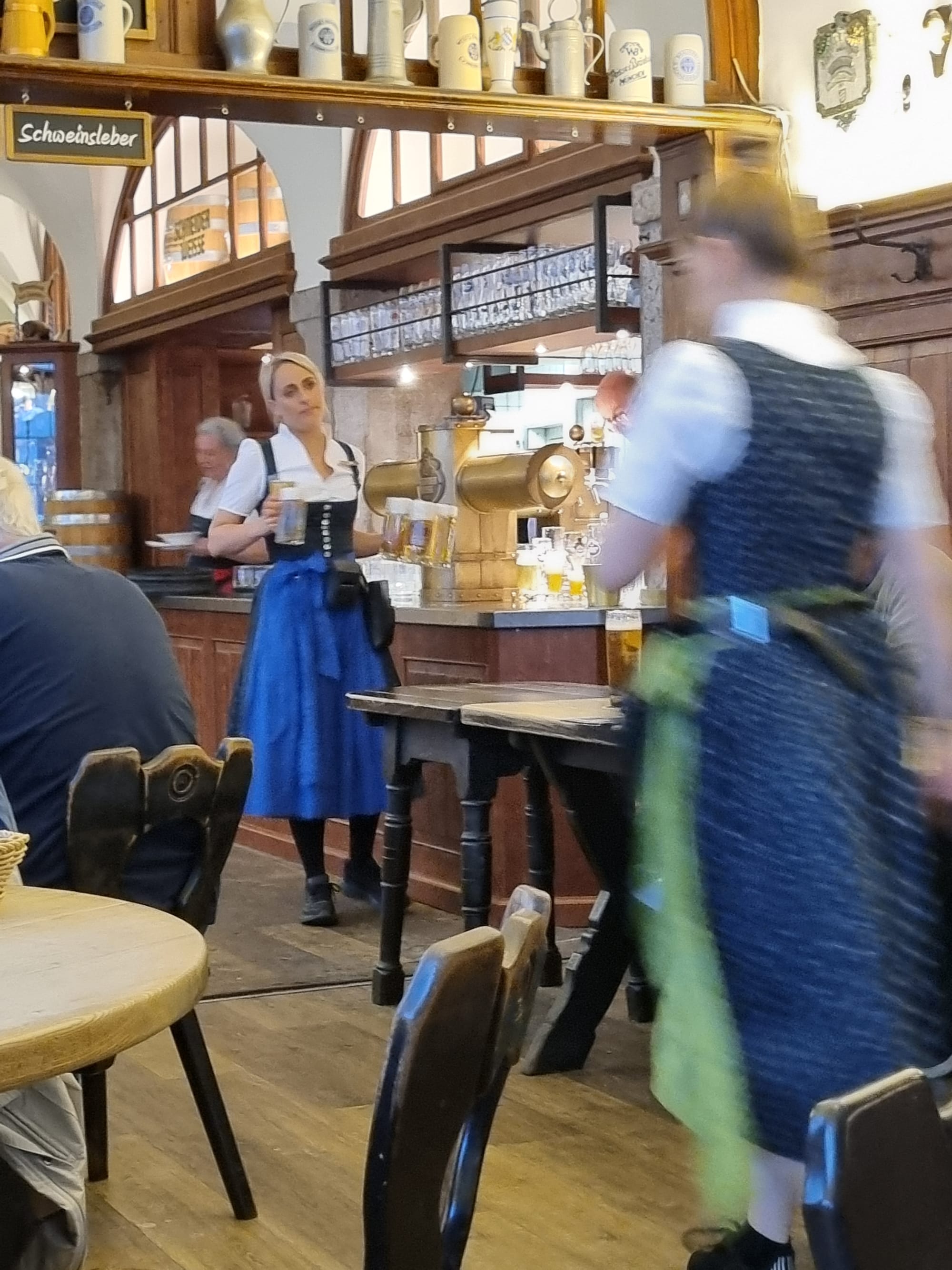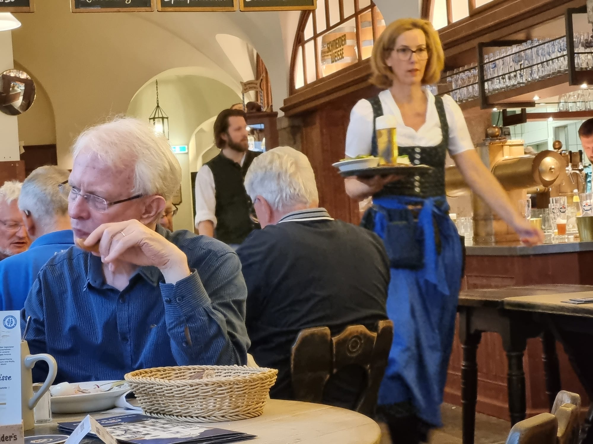 Nas cervejarias as mesas são extensas e divididas com estranhos. Pode-se estar sentado em uma delas e o garçom direcionar pessoas para compartilharem a nossa mesa. Tanto os atendentes homens quanto as mulheres vestem um traje típico nas cervejarias e é muito comum encontrar senhores muito idosos, sozinhos, alguns com traje típico, passando longas horas na cervejaria consumindo cerveja com moderação.