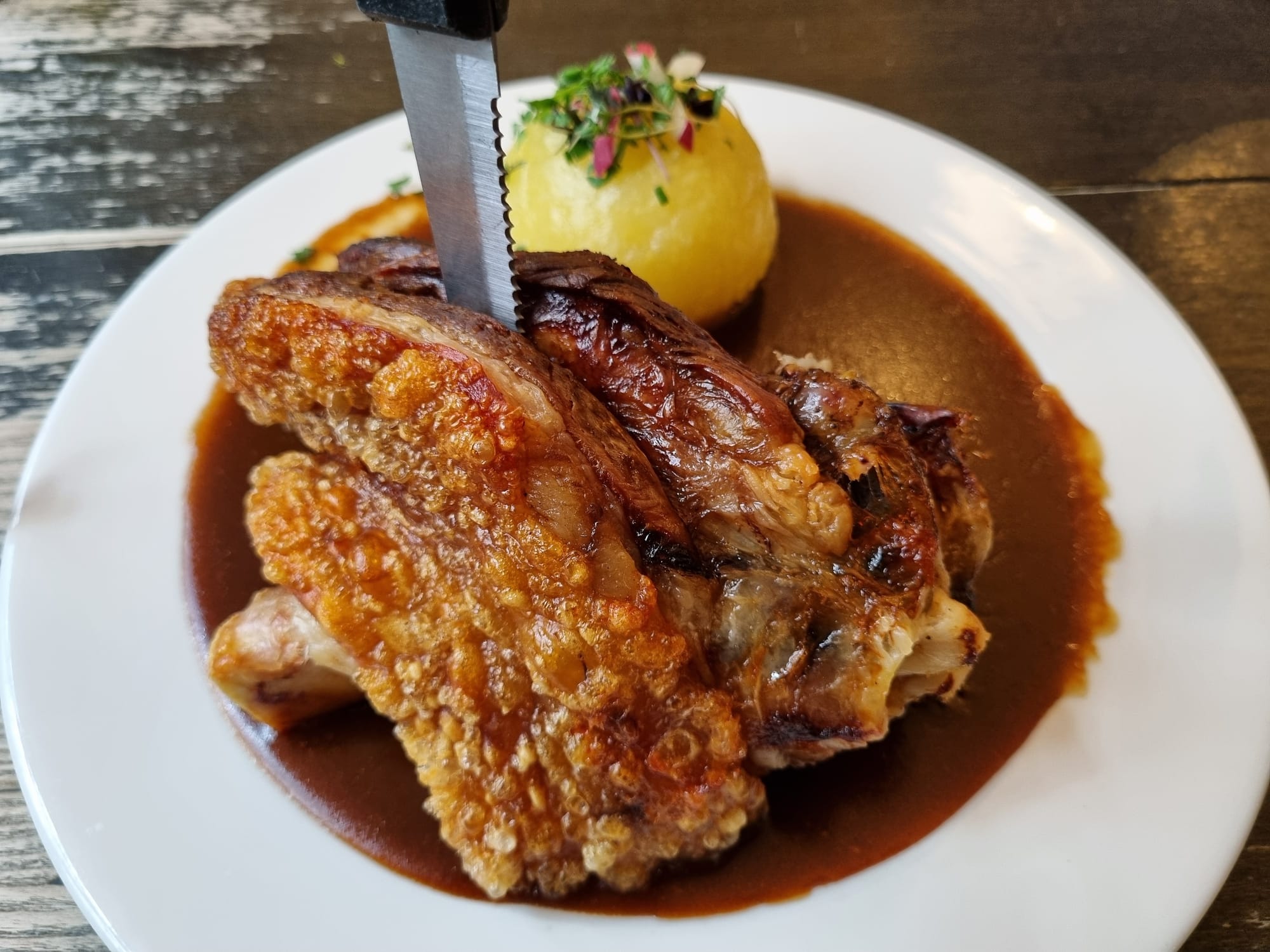 Em Munique aprendi muito sobre as cervejarias. Cada uma delas adota uma marca de cerveja. A gastronomia para acompanhar o consumo delas são a carne de porco preparada de variadas formas, sendo a mais apreciada o “schweinshaxe”. São consumidas ainda com diversos tipos de salsichas, batata inglesa e o tradicional chucrute de repolho branco ou roxo. Quase todas as cervejarias servem uma bola de batata denominada de boulette de pomme de terre. Na realidade, não tem gosto algum apesar da aparência ser muito boa. Nem eu e nem os brasileiros com quem tive contato apreciamos esta bola de batata, mas nota-se que é uma iguaria típica para se consumir com cerveja.