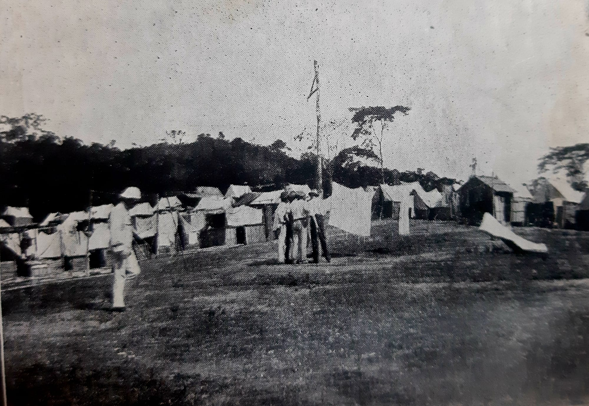 Imagens do acampamento dos prisioneiros alemães. Na última foto, colorida, o platô onde ficaram acampados.