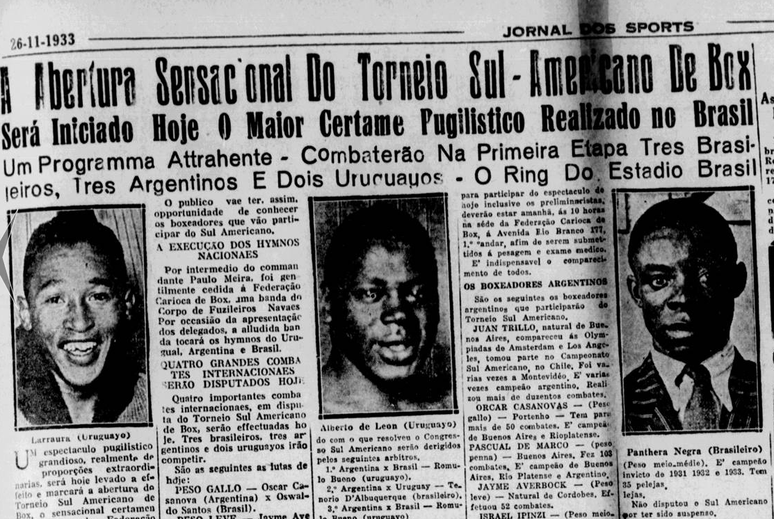 O articulista do Diário Carioca de 25 de maio de 1932 escreveu: “Tomou novamente a atenção dos friburguenses o sport do murro. É que ultimamente vem sendo realizados alguns combates interessantes que têm despertado o entusiasmo antigo dos residentes da linda cidade serrana...” Nesta ocasião Pantera Negra lutara no teatro D. Eugênia com Kid Barraca sendo vencedor por “K.O.,no quarto round”. Na encantadora cidade dos cravos o boxista Geraldino dos Santos pediu a “revanche” de José Assobrab e o campeão nacional do peso leve estava disposto a pelejar em Friburgo. Era prometida uma excelente temporada pugilística para os friburguenses. O jornal A Nação de 27 de julho de 1935 estampou na manchete “Pantera Negra, o formidável negro de Friburgo”. “...A empresa[Estádio Brasil] que não quer privar o público de bons espetáculos resolveu mandar buscar em Friburgo o formidável Pantera Negra, aquele pretinho que assombrou a plateia do Rio por ocasião do sul-americano com uma fulminante vitória sobre o Carvoeiro, virá de Friburgo especialmente para enfrentar o Mário Pujol, o boxeador que está se tornando o terror dos pesos médios do Rio. Ambos podem fazer uma batalha sensacional pois Pantera Negra é o melhor substituto que a empresa poderia encontrar...”