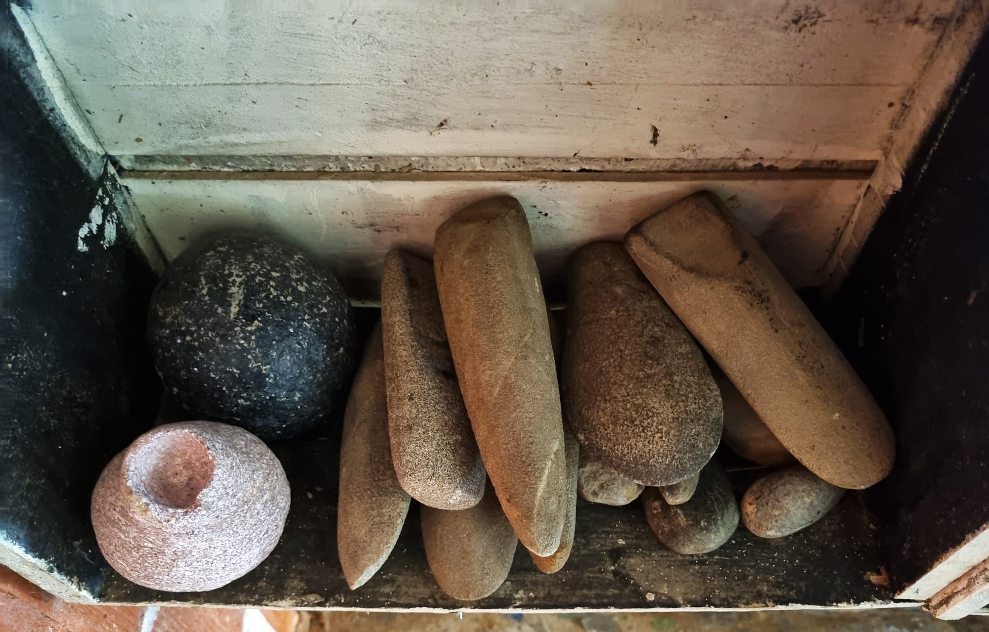 Há alguns anos, estive em Salinas gravando um documentário com Almir Tardin da Silva, produtor rural que cultiva brócolis em seu sítio. Almir, que outrora mantinha um bar — hoje praticamente desativado devido a problemas pessoais —, guarda em seu estabelecimento comercial um valioso acervo de objetos antigos, doados por amigos ao longo dos anos. Dentre todos, chamaram-me particularmente a atenção inúmeras pedras polidas, que atribuo a origens indígenas. Segundo Almir, foram todas localizadas no próprio distrito.