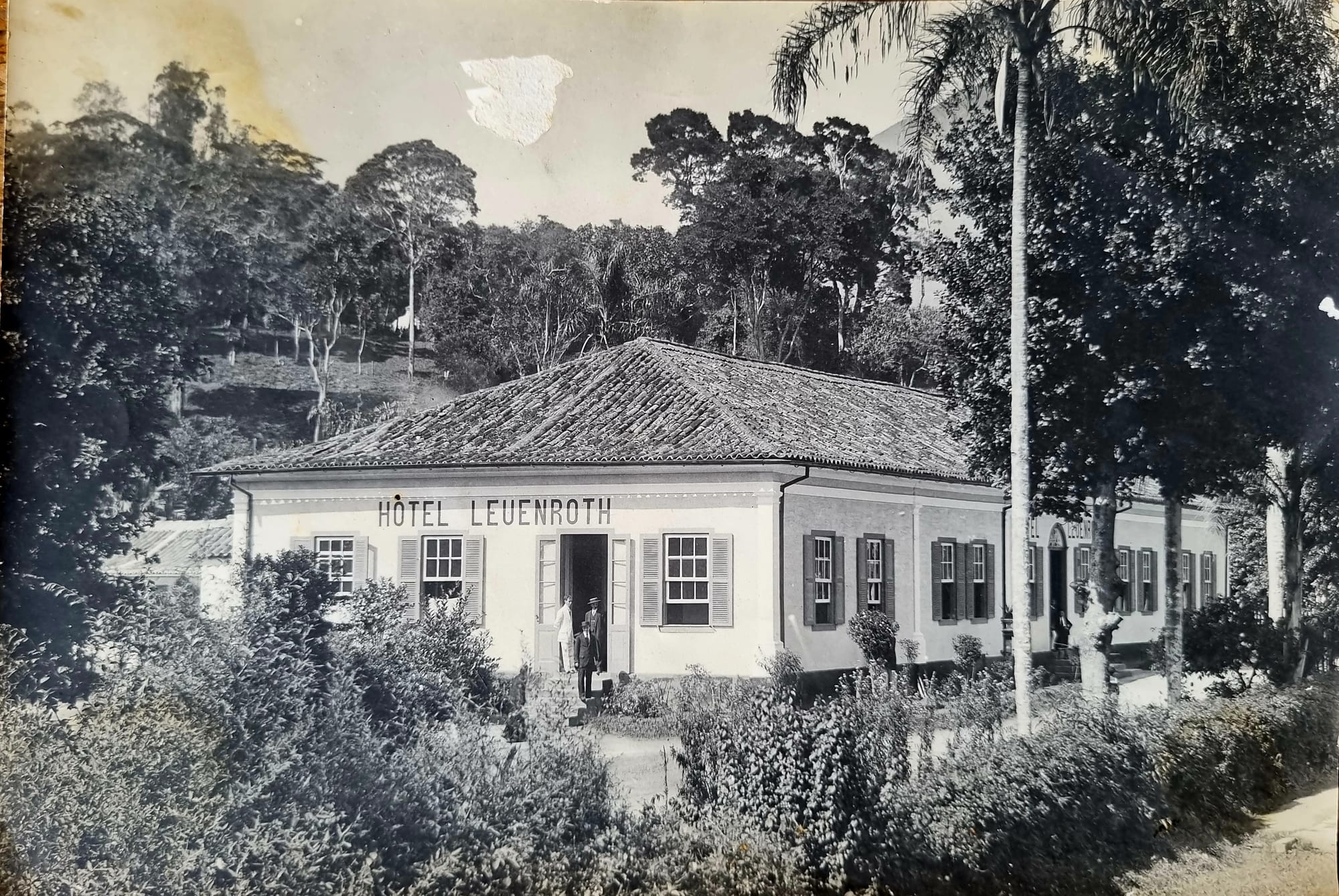 Hotel Leuenroth. O prédio não existe mais, mas o nome da rua permanece - rua Leuenroth, no centro. A condessa de Barral à direita.